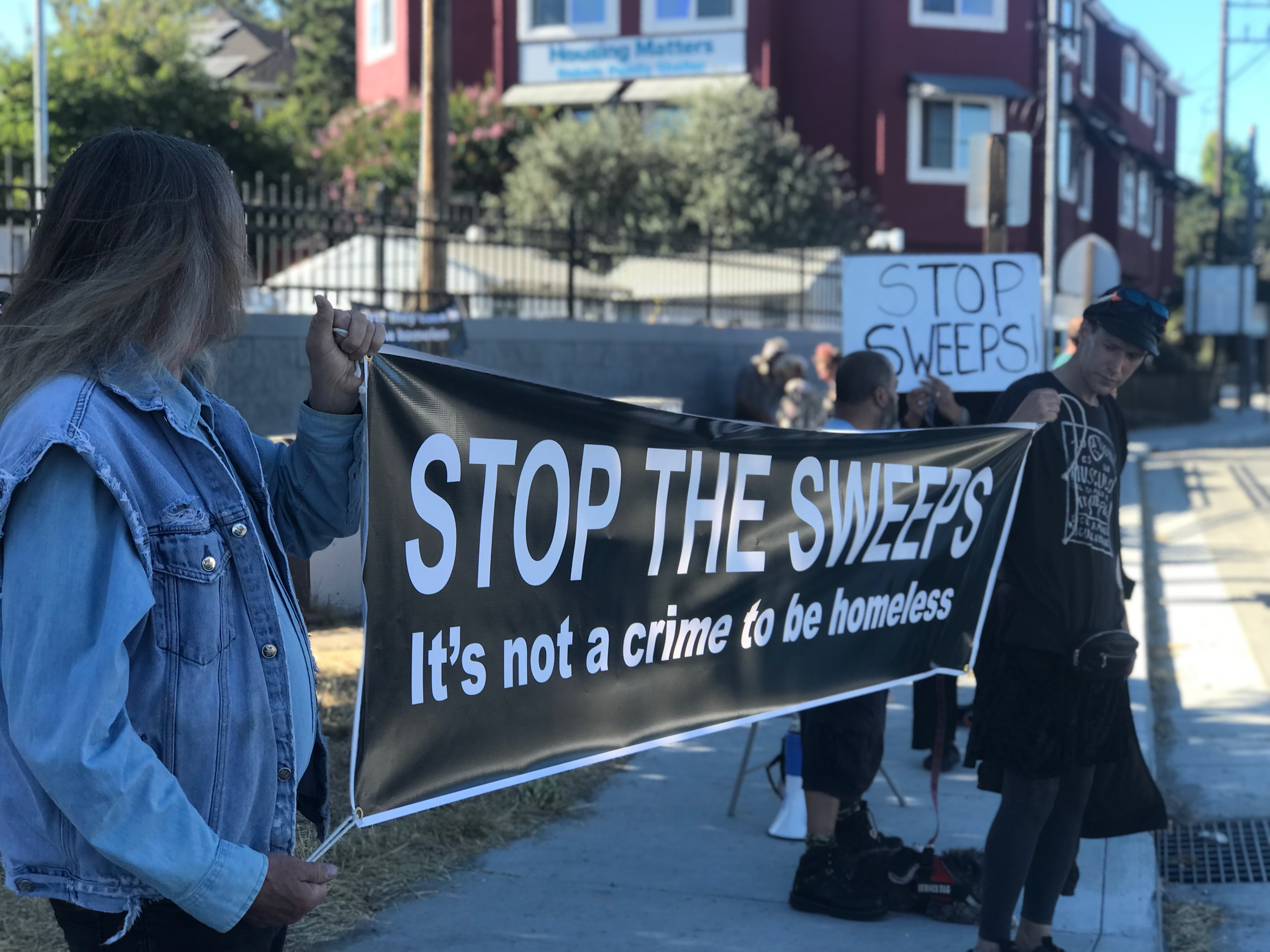 The Stop the Sweeps protests in Santa Cruz have been focused against the local homeless shelter Housing Matters and their coordination with the city to clear the streets of the homeless around their shelter.
