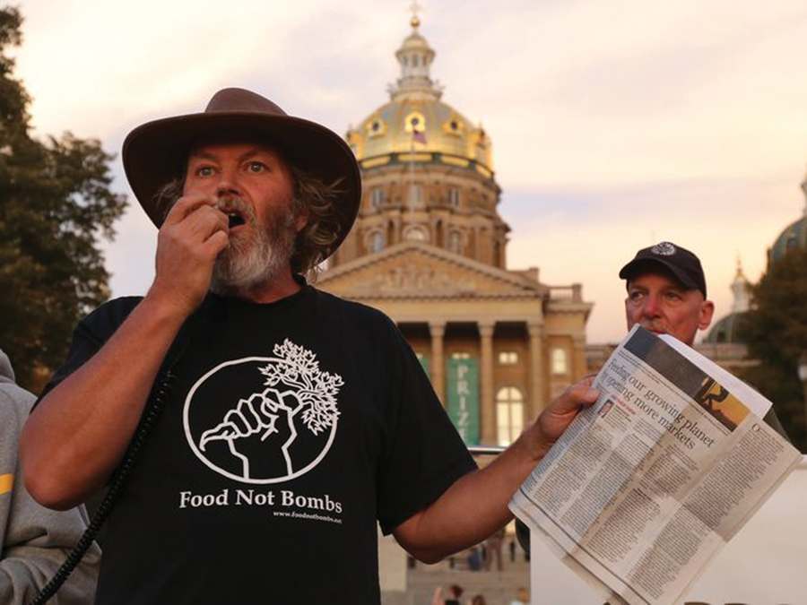 Food Not Bombs co-founder Keith McHenry was one of the speakers at the Thursday, Oct. 16 OWFP Rally and Direct Action 6 p.m. State Capitol building, World Food Prize Awards Ceremony