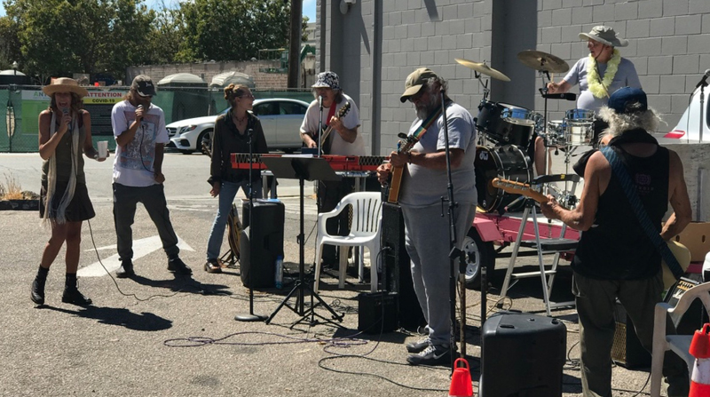 India Joze has contributed their kitchen, their refrigeration and thousands of hours of labor to help make sure a healthy meal is served everyday. Tom at University Copy donated reams of printing. The staff at WorldCentric has gone out of their way to supply us with cases of compostable paper products. Our good friend, Eric Fawcett, a local retired master plumber constructs our DIY hand washing stations and repairs the faucets at our kitchen. The staff at the Homeless Garden Project made vegan burritos and sandwiches. Barrios Unidos helped store dozens of pallets of dry goods before we purchased our second Conex box. Musicians perform at our meals. The drivers at Meals on Wheels drop off their extra food. Encompass social workers help us calm the emotionally distressed. Our friends at the Court Community Service Program send us waves of volunteers. Church people deliver cases of socks. A small army of supporters share our messages on line.
