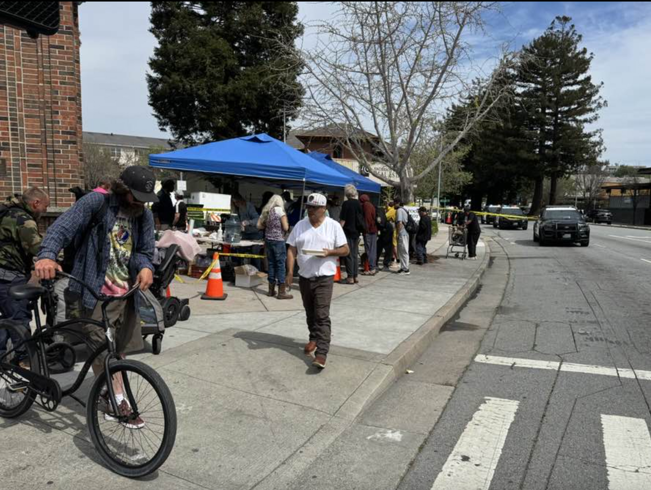 Saturday March 21, 2026 was the perfect sunny day. The meal promised to be another glorious celebration of community. Other than a dispute over a dog off the leash the meals have been peaceful for weeks. A welcoming gathering where friends chat and enjoy lunch together. The free telephone lady might join us. This will please those who lost theirs to the police or a thief. Community members are already pulling in to drop off clothing and food donations. Sometimes we are honored with live music but not today.